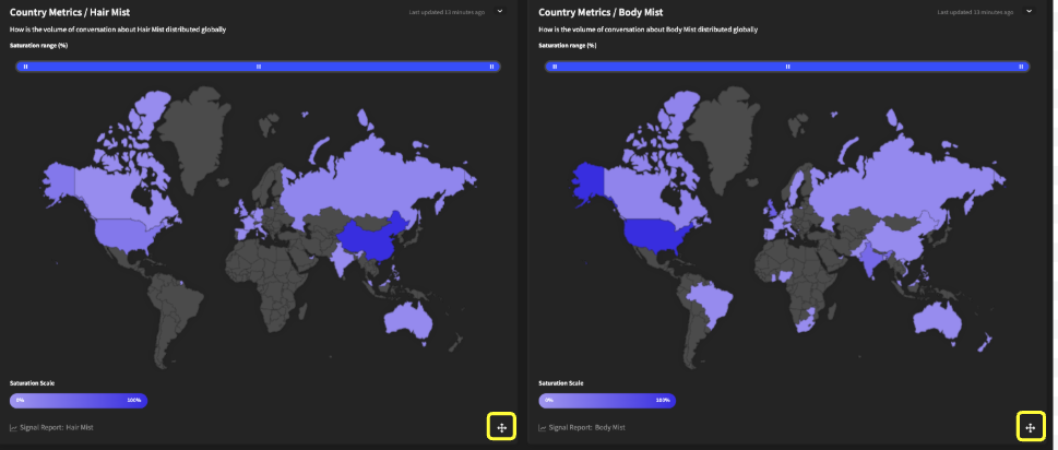 You can change the layout of a story by clicking down and holding the cross icon (highlighted in yellow) of a signal card. Holding down on this icon will allow you to rearrange and move the cards in a drag-and-drop manner within the story. Once you have finished editing the layout, you can click the “Save Layout” button to finalize your changes.
