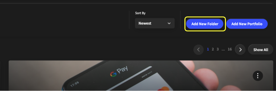 To create a folder, go to the upper right hand corner of the Portfolios tab and select “Add New Folder" (highlighted in yellow)