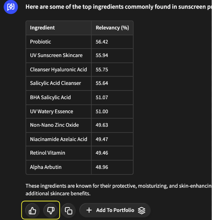 You can rate the quality of a response by either pressing the thumbs up or thumbs down button